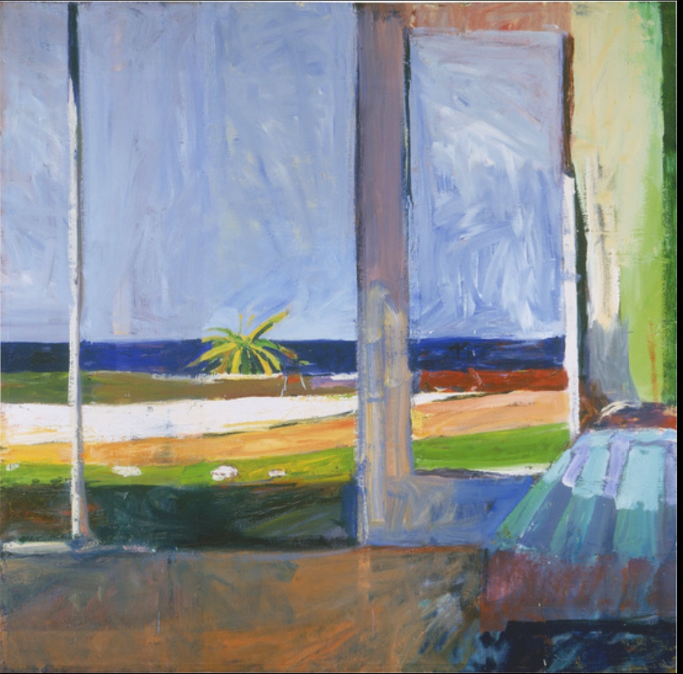 Housing scenes, palm trees and a far ocean.